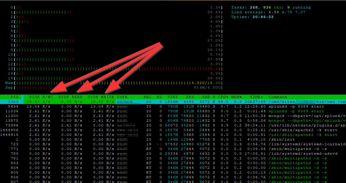 htop mit IO Daten